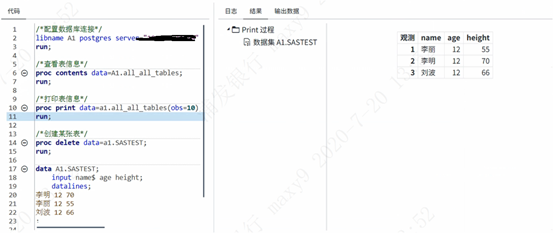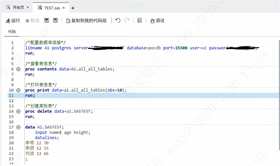 8.点击左上角导航栏,选择开发sas代码,点击新建并输入以下代码段。