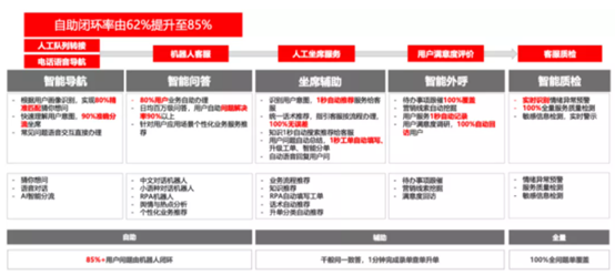 - 智能外呼,在用户满意度评价部分,根据营销线索完成自动挖掘,自动完成客户满意度回访;
