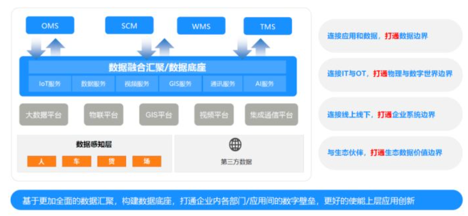 更重要的是,基于这些数据,华为物流实现了四个打通:第一,打通生态合作伙伴;第二,连接线下与线上;第三,打通IT与OT,打通物理的世界;最后,数据要能连接我们的应用,去打通数据边界,千万不要将数据放进服务器里面,变成沉睡的资产。