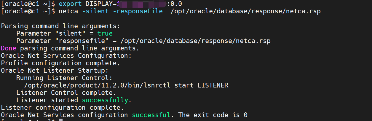 netca -silent -responseFile /opt/oracle/database/response/netca.rsp