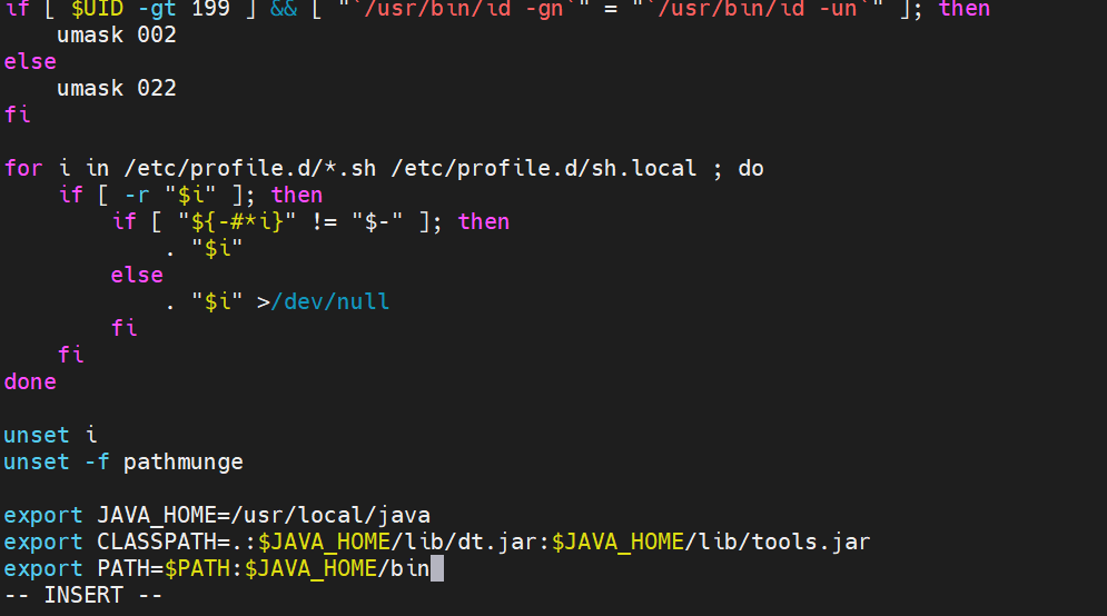 vi /etc/profile #更改环境变量,在最后添加如下内容