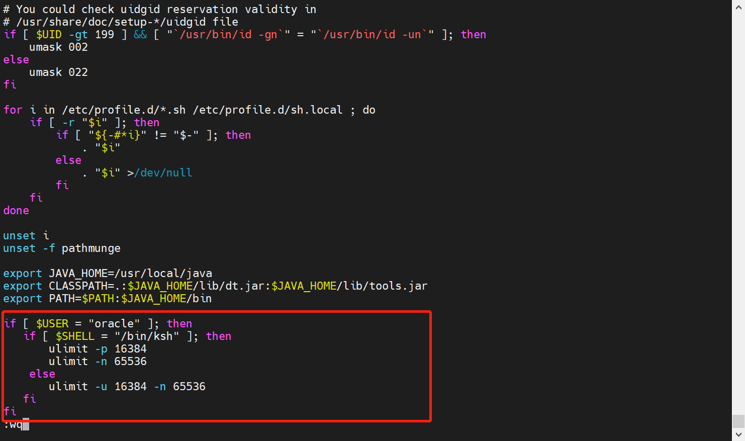 oracle hard nofile 65536