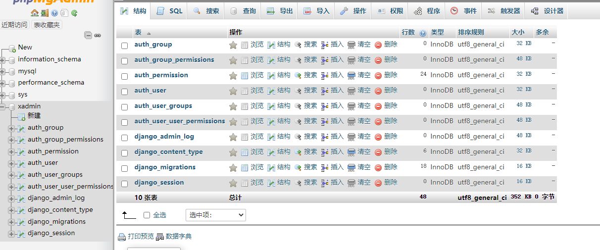 create database xadmin charset=utf8;