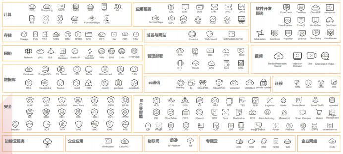 华为云服务全方位API能力开放,包含13大类60+产品服务,共计1800+AP