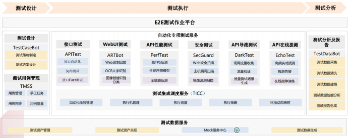 通过微服务化的架构,在业务层面上,提供API全生命周期的测试。下图为微服务测试业务全景图。