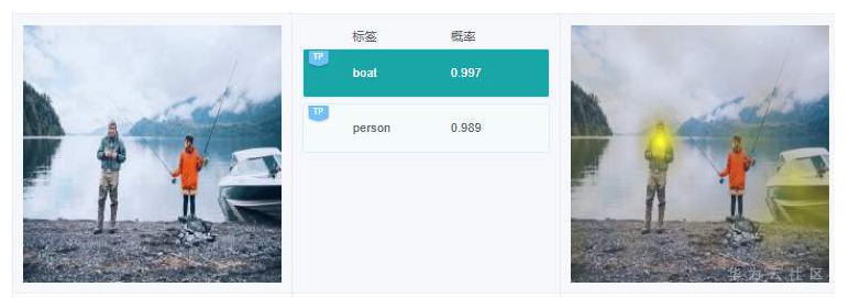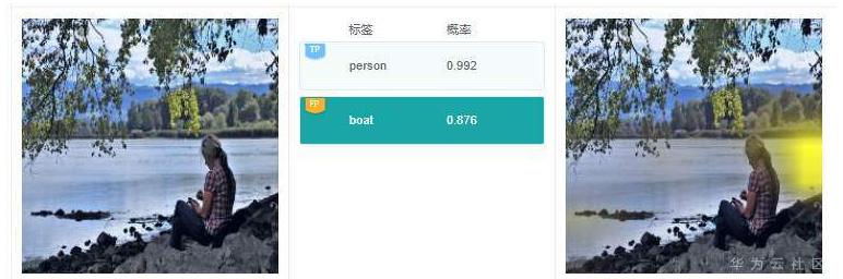 例7.2.3:上图中,有1艘小艇,有个标签是“boat”,这个没错。不过在右边针对标签“boat”的解释,高亮区域却在人身上,这个偏差有点大。