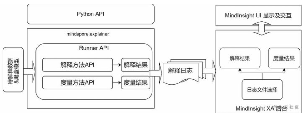 先使用脚本调用MindSpore 提供的python API进行解释结果的生成和收集,然后启动MindInsight对这些结果进行展示,整体流程如下图: