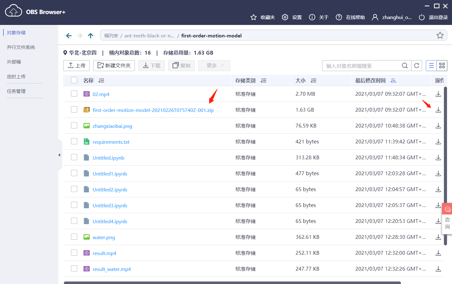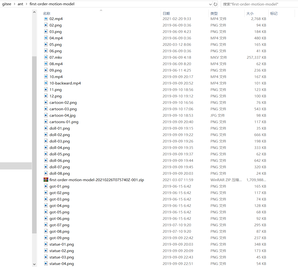 下载完毕后,解压文件到 E:\gitee\ant\first-order-motion-model 目录,跟ModelArts上的目录名保持一致。