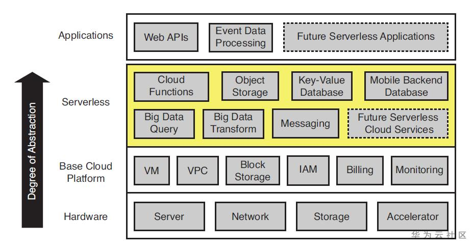 - 执行一段代码而不是分配执行代码的资源的抽象。用户提供一段代码,云端自动配置资源来执行代码(NoOPS,传统云计算是devops)