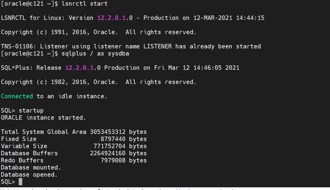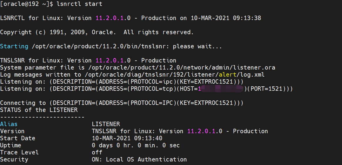 lsnrctl start