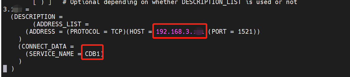 (ADDRESS = (PROTOCOL = TCP)(HOST = 192.168.3.10)(PORT = 1521))