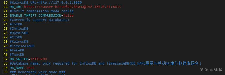 (1). DB_URL=https://rwuser:password@192.168.0.41:8635 ,配置时用真实密码替换password,如果密码中有特殊字符,比如@,用对应ASCII "%40"码代替,IP地址是GaussDB(for Influx)的SLB地址