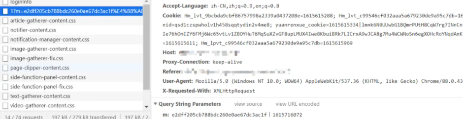 跳过 debugger,通过网络面板,找到我们需要分析的参数是下面这个请求的m参数