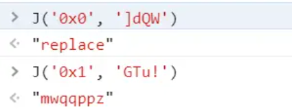 再结合oo0O0中的JU可以得出J('0x0', ']dQW')J('0x1', 'GTu!')的结果如下