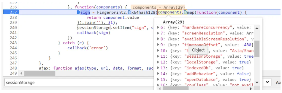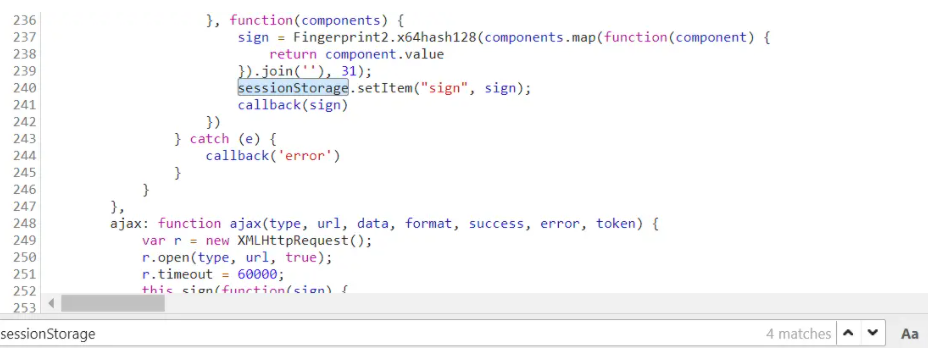 可以看到 sign 是sessionStorage中取出的,可以在当前的文件中检索sessionStorage,可以看到下面setItem的逻辑