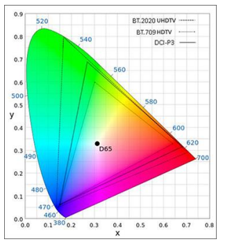 广色域,可以理解为单独对颜色的范围进行调整,由原来的709BT提升到2020BT。