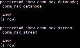 因此,对于内存充足的设备,可适当的调大comm_usable_memory,同时减小不必要的参数comm_max_datanode的大小,对于comm_max_stream进行合理的评估后再进行修改。如图9、10,可以看到通信库内存为4000MB,此时已使用了4701MB,查看comm_max_datanode和comm_max_stream均为4096,计算得到数据结构分配内存为4096MB,已超过最大限制,但通信上并不会对此报错,只是通过减小buffer限制内存的使用。由于此集群只有80个DN,comm_max_datanode明显设置不合理,将其改为128,并适当的调大comm_usable_memory的值后,通信性能恢复正常。此外,数据进入buffer前会占用部分内存空间,为保障效率,没有每次都进行回收,而是由参数comm_memory_pool控制,此值可设置为comm_usable_memory的一半。