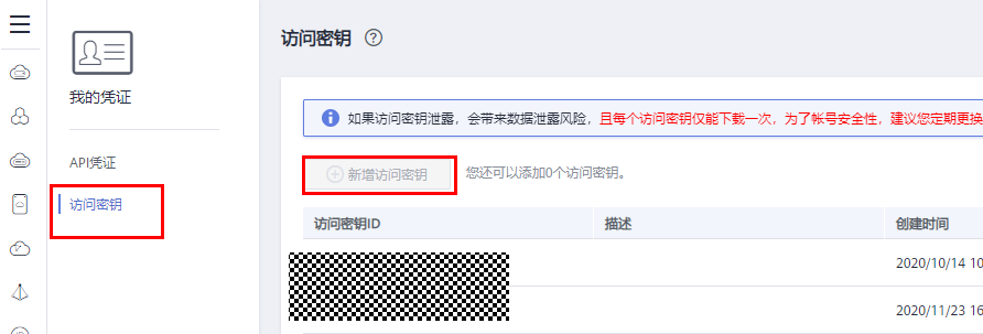 点击新增访问密钥