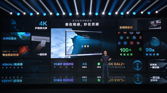 本次发布的新产品华为协作平板,旨在让更多的会议室,享有智能化的工作方式,让更多的教室,享受到高效而且健康的互动教学体验。新产品融合了柔光护眼、华为变屏,智绘妙笔等一系列黑科技,集合海量专属大屏应用,端云协同,加速企业办公的智能升级。