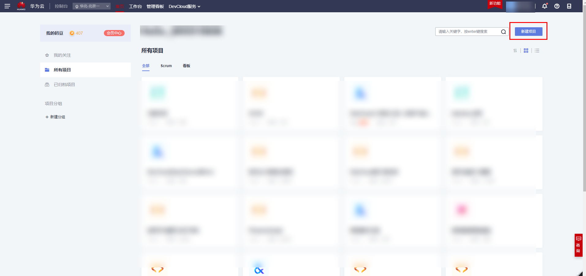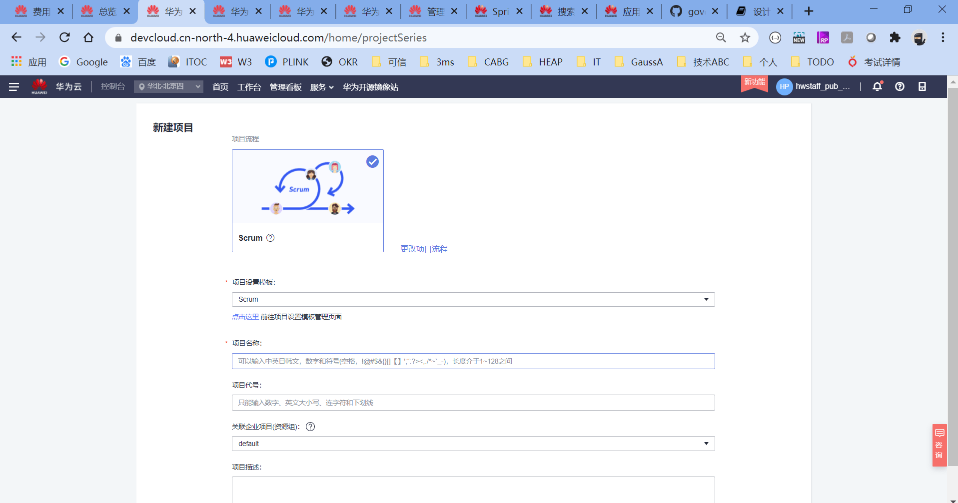 进入华为云DevCloud之后点右上角的“创建项目”,即可进入创建页面,