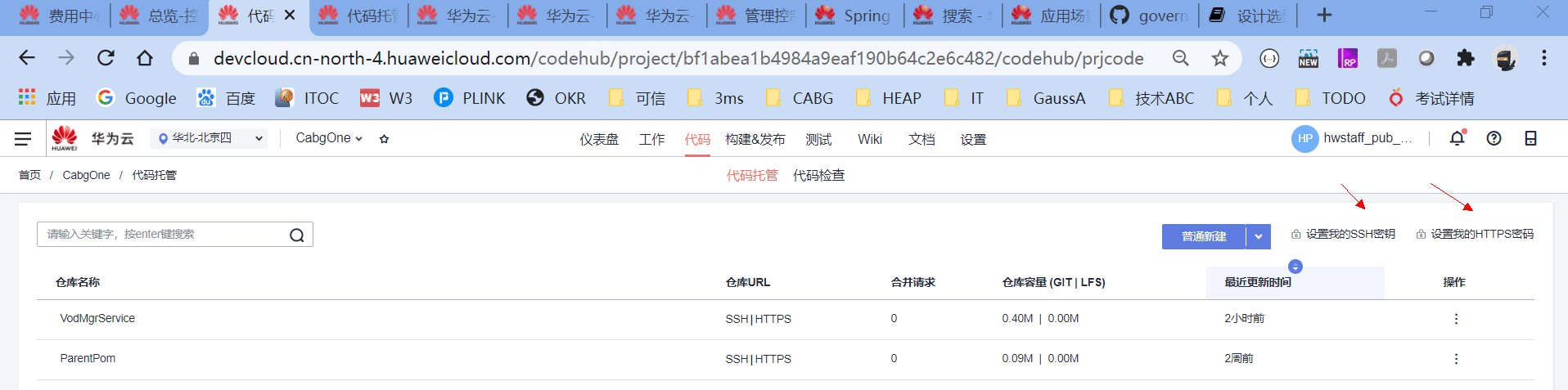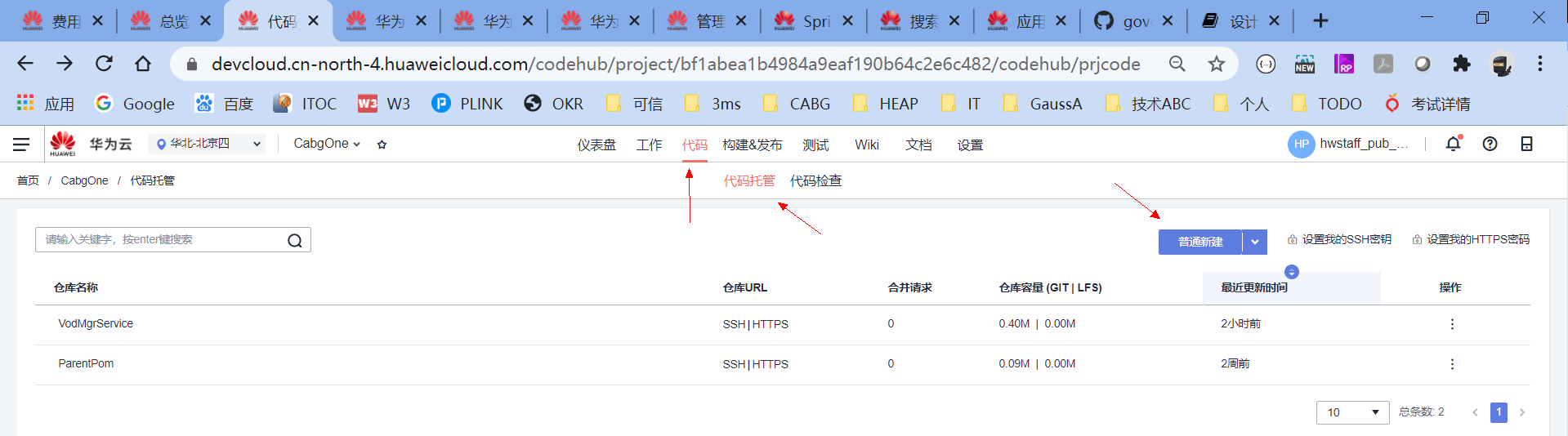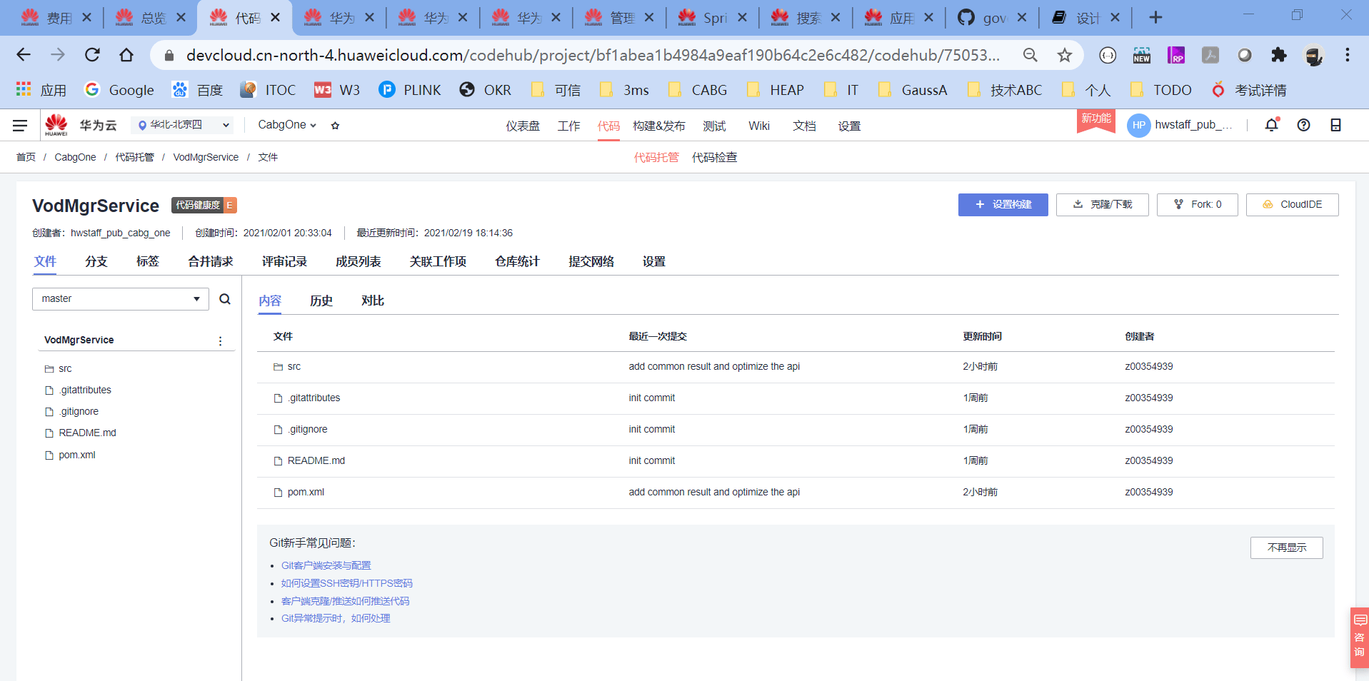 代码仓库使用的是华为云DevCloud的CodeHub,华为云DevCloud是集华为研发实践、前沿研发理念、先进研发工具为一体的DevOps平台。