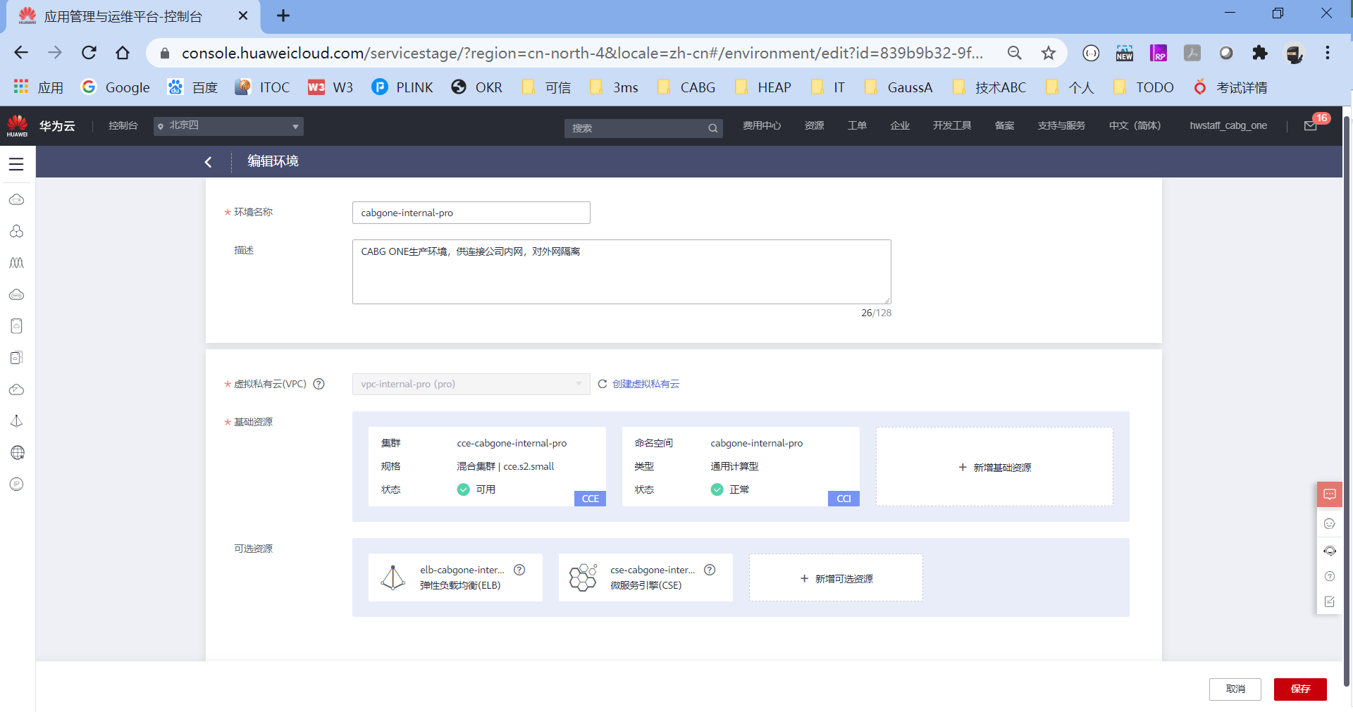 这里可以看到,我为CabgOne这个产品的生产环境、涉及到内网连接的资源组,细分了一个环境,叫cabgone-internal-pro,这样所有CabgOne产品符合这个条件的资源,都可以在这个资源池里。