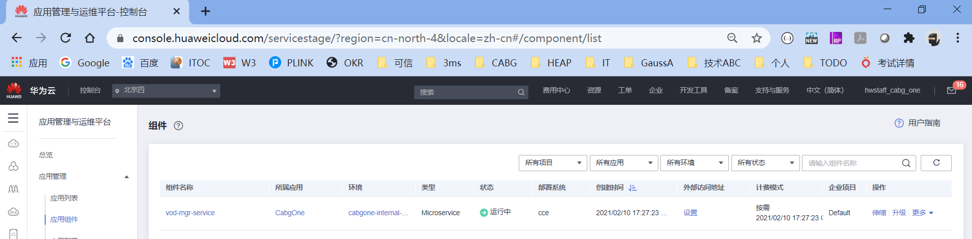 组件就是产品的子产品或者模块,也是一个独立的部署单元,比如CabgOne里的一个SmartEngineService就是一个组件,将组建绑定了环境,即可开始后面的打包部署