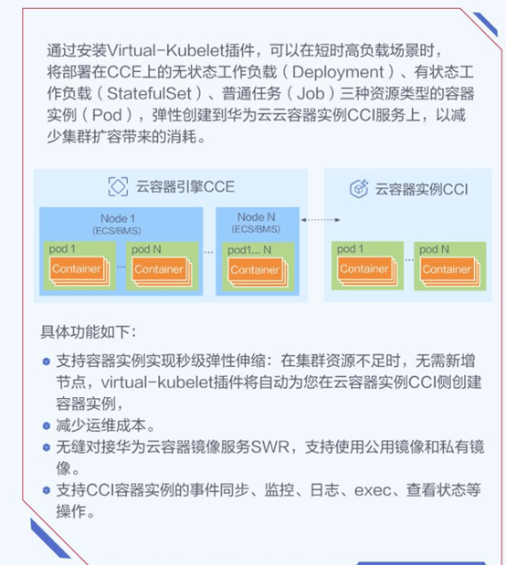 一张图就说明白了,CCI更贵,但弹性更好,适合抢购啥的场景;CCE便宜点,适合长期运行的;CCI可以作为CCE的弹性扩展来伸缩。