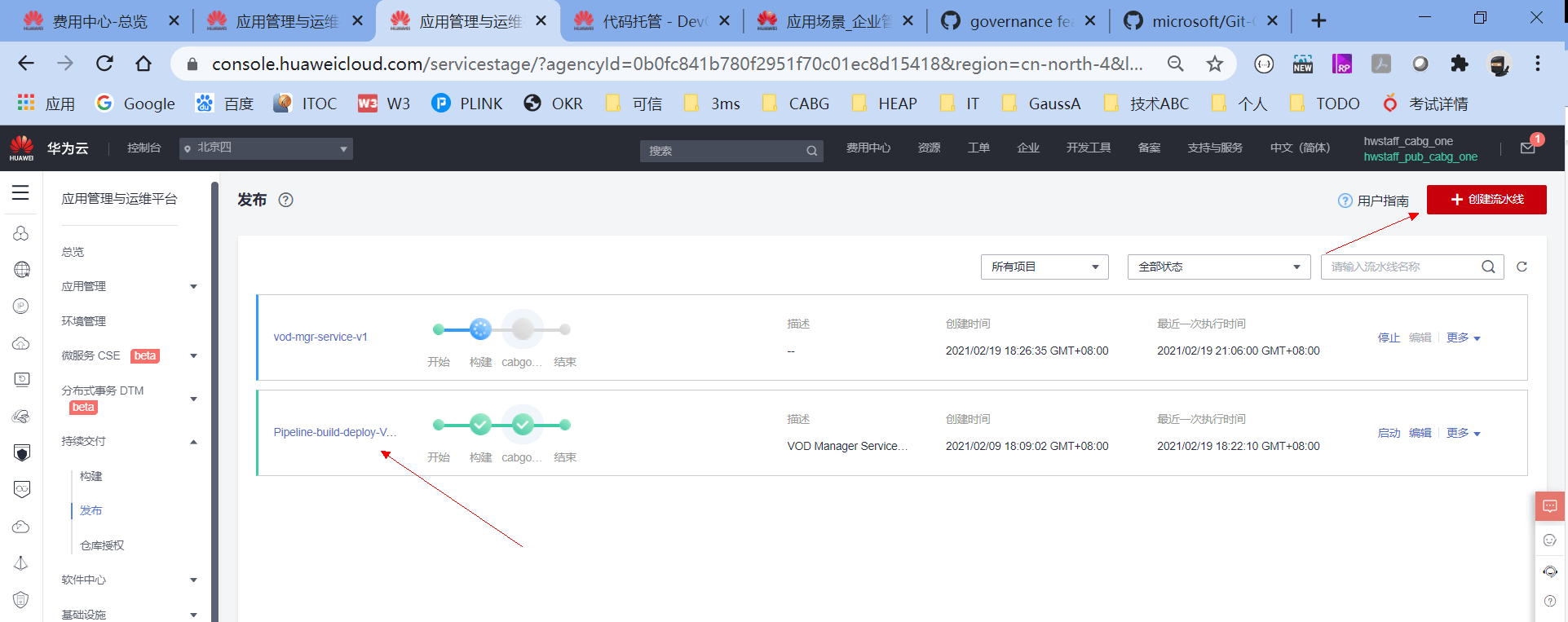 直接用ServiceStage里面“持续交付”->构建和发布功能,这里可以创建流水线
