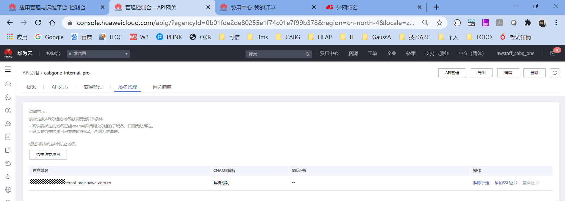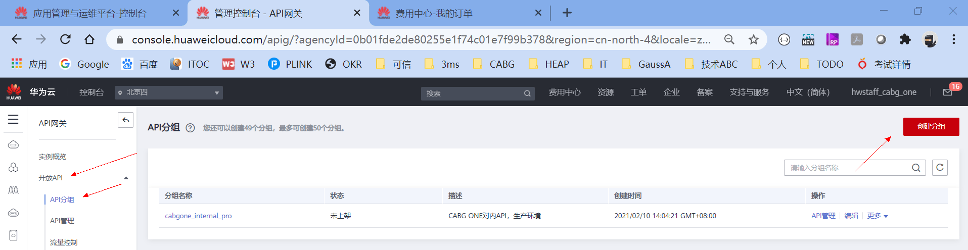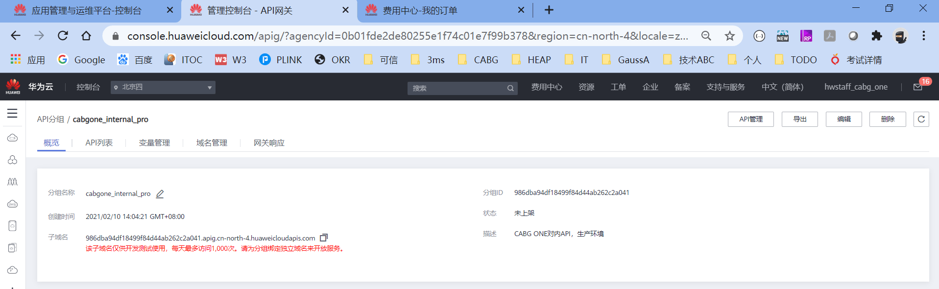 首先我们用的是共享版的APIG,然后APIG是通过API分组的方式,生成不同的API访问原始域名,然后绑定不同的VPC和域名的。