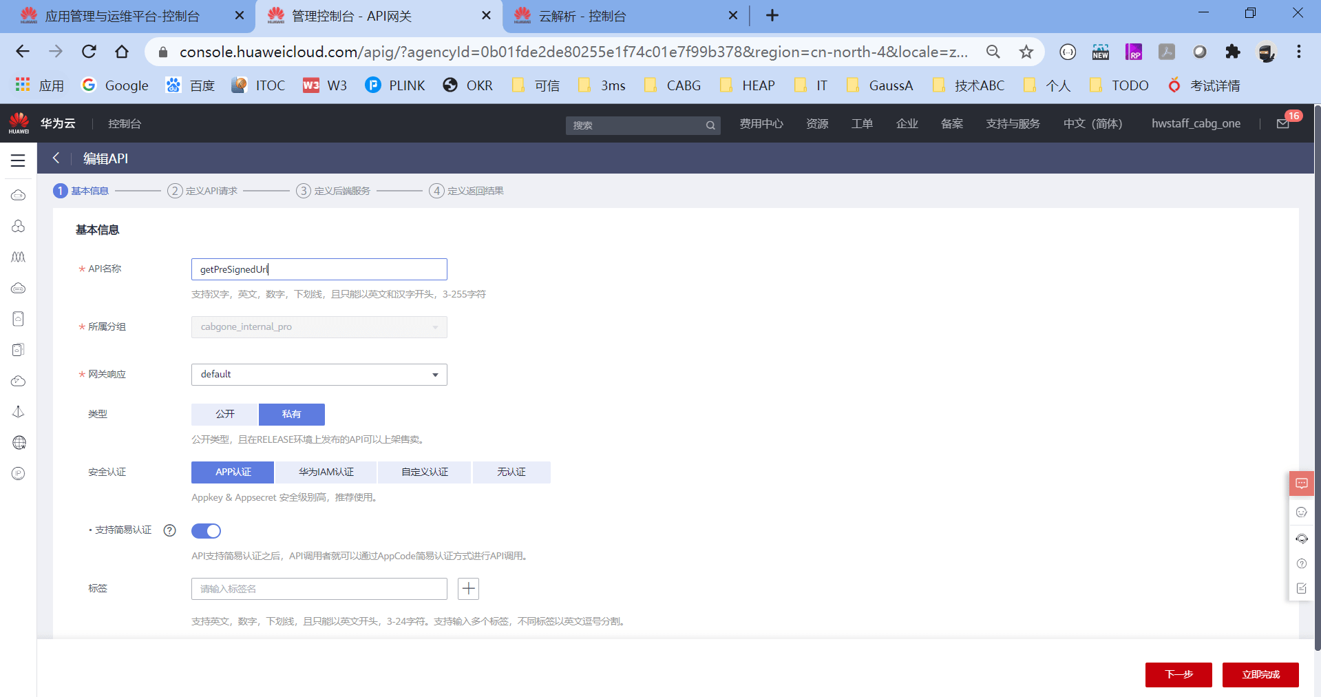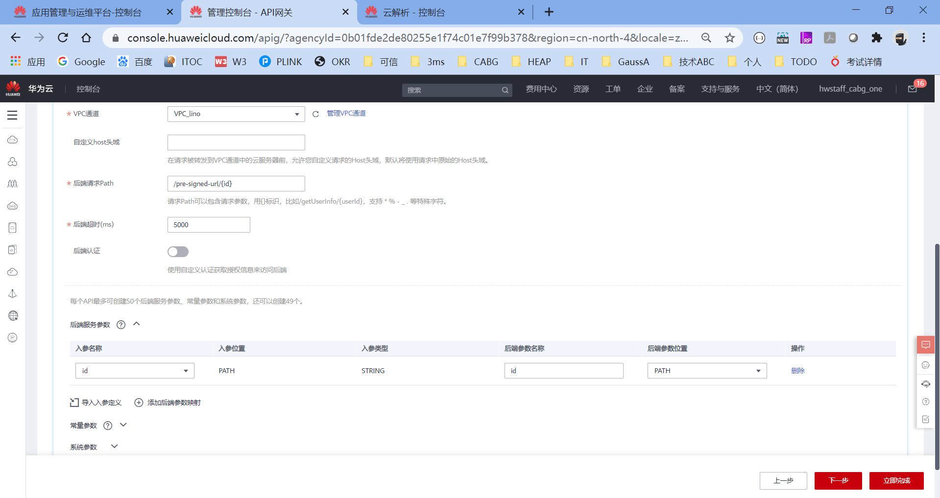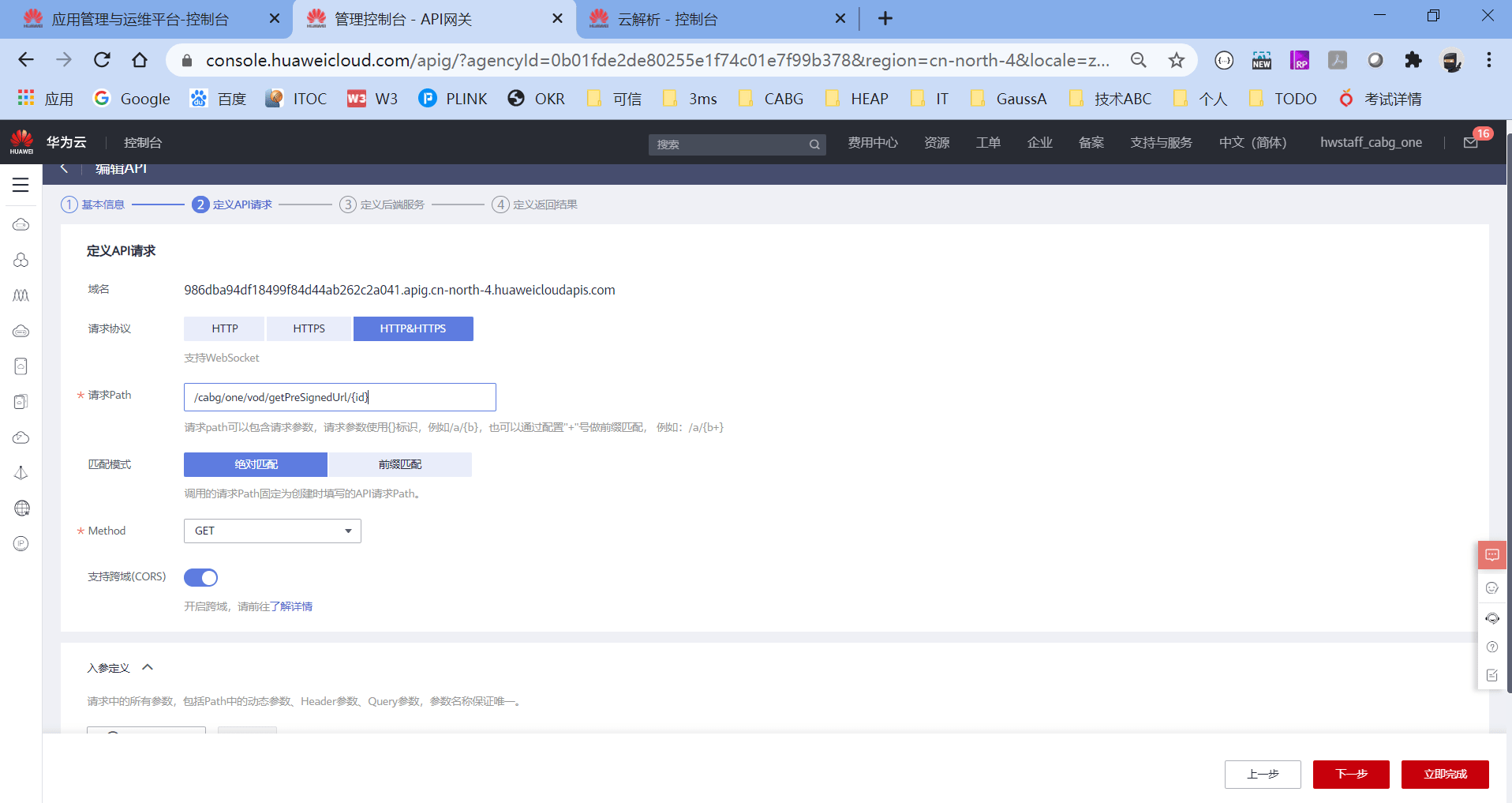 首先我们用的是共享版的APIG,然后APIG是通过API分组的方式,生成不同的API访问原始域名,然后绑定不同的VPC和域名的。