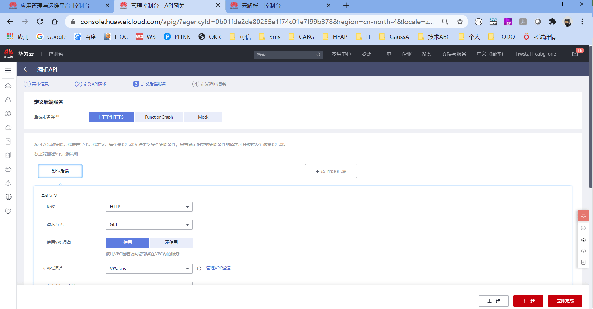 配置后端服务的格式和VPC通道
