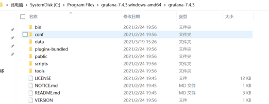 下载完成后,在windows路径下解压文件grafana-7.4.3.windows-amd64.rar,如下图: