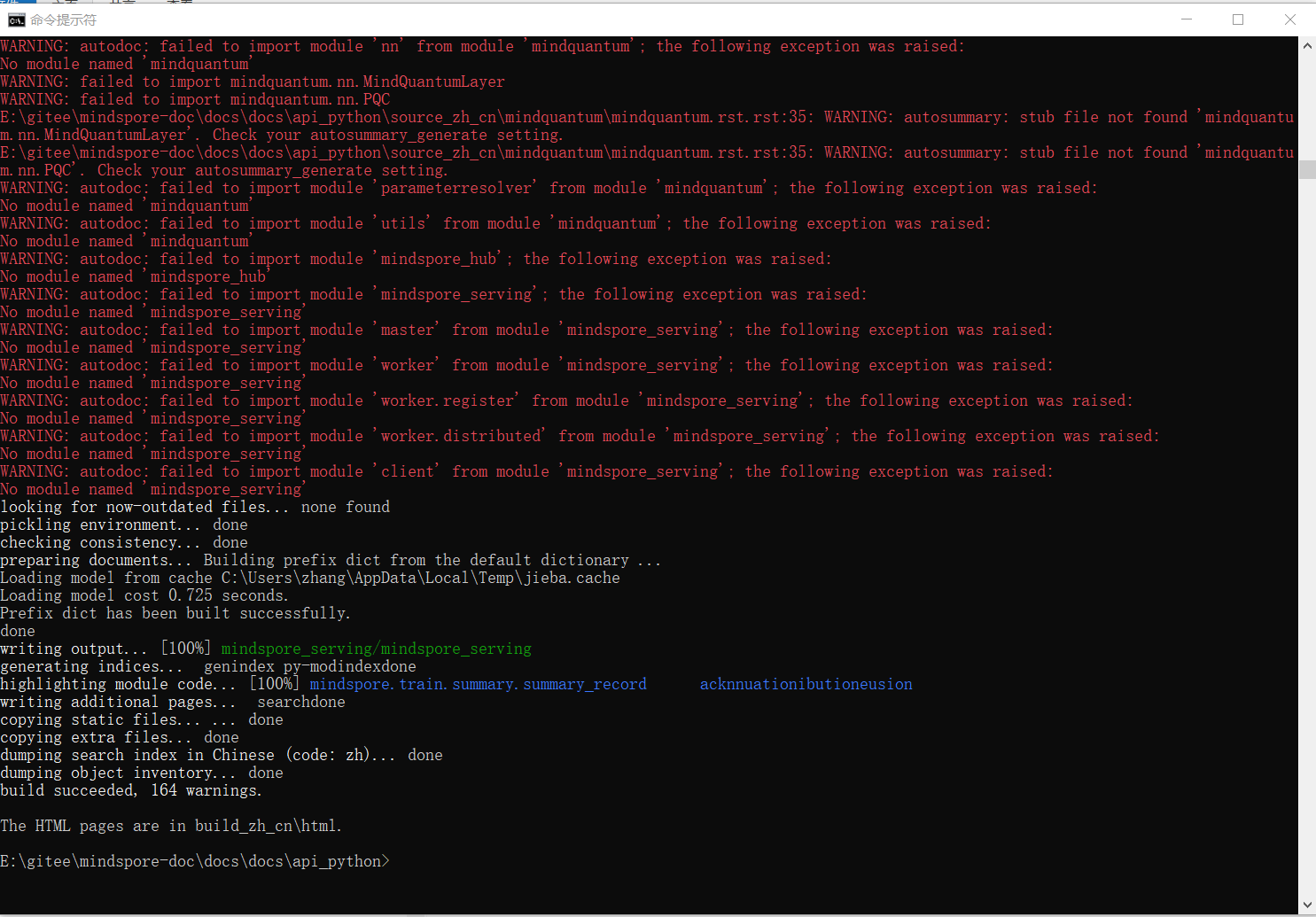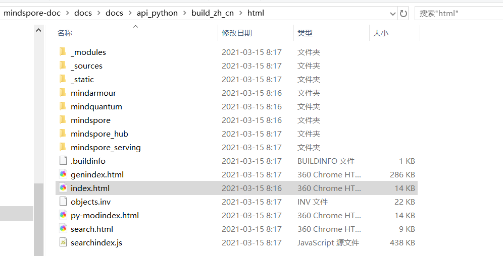 重新回到 mindspore-doc目录的相关目录 make html