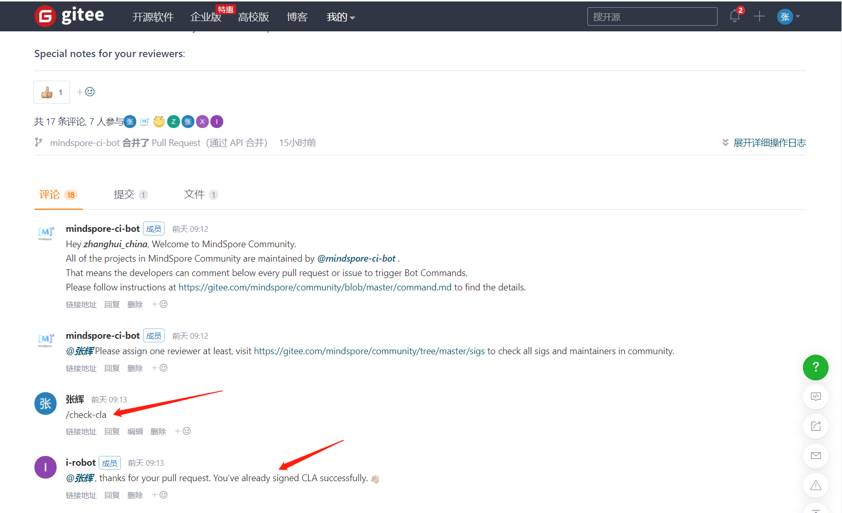 第一次在Mindspore仓库提交PR,i-robot会告诉你需要签署CLA。
