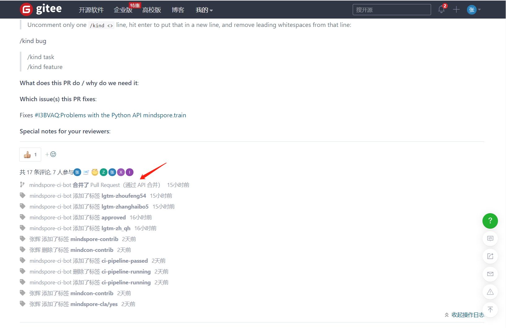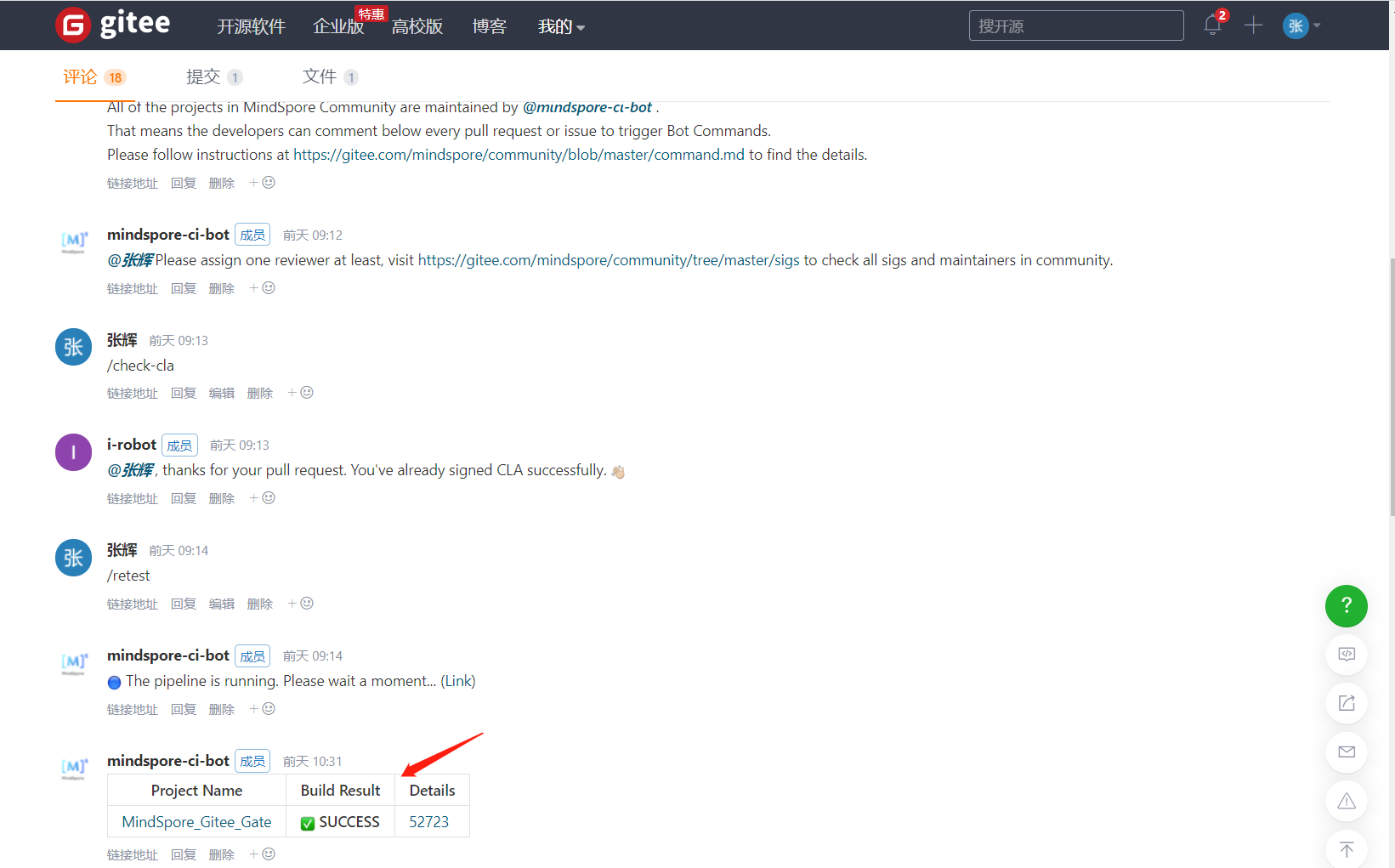 一般情况下,我们应该在此时,耐心等待MindSpore审核团队进行PR的审核就行了。