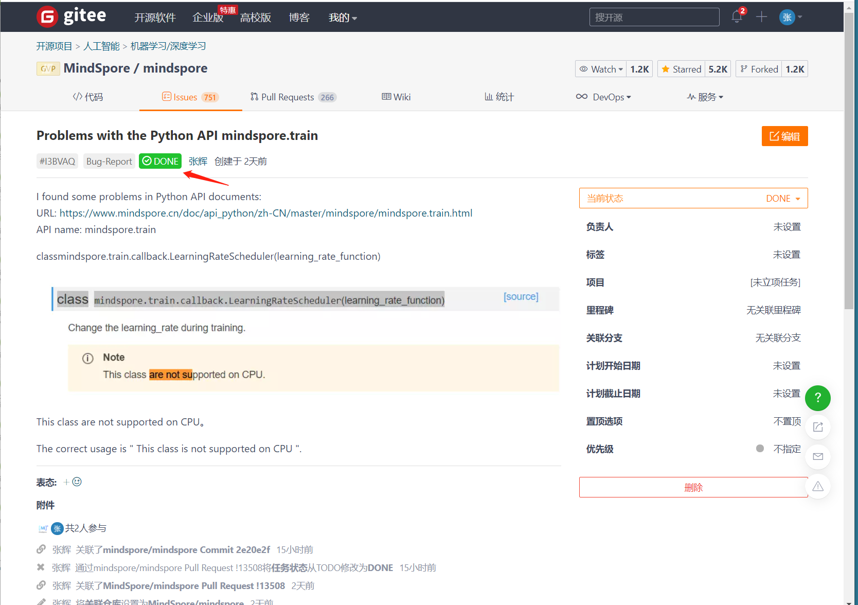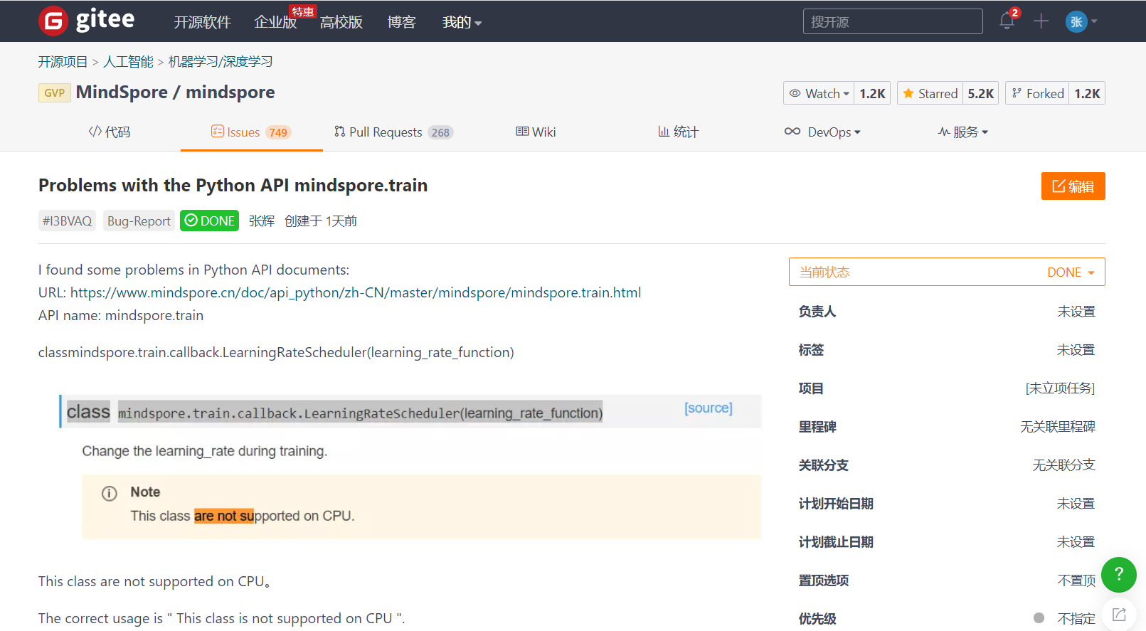 点击我们找到的issue对应的API mindspore.train