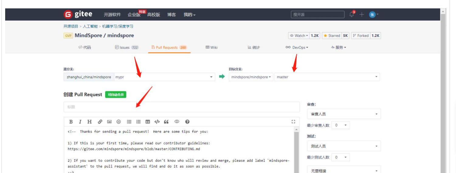 比如这个是用自己个人仓库mypr的版本,往官方仓库mindspore/mindspore的master分支提交版本。