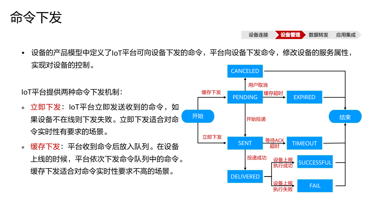 思考题二十一:21.(判断)华为云物联网平台支持的命令下发模式有立即下发和缓存下发两种。 (正确)