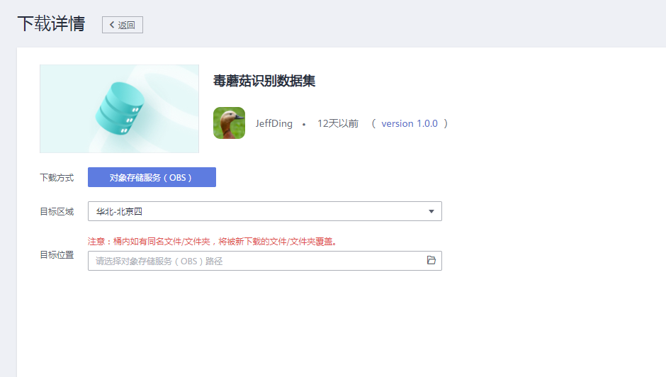 点击链接进入到毒蘑菇检测数据集下载页面后点击【下载】