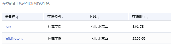 创建完成后,在对象存储管理的主界面中就可以看到前面创建好的桶了