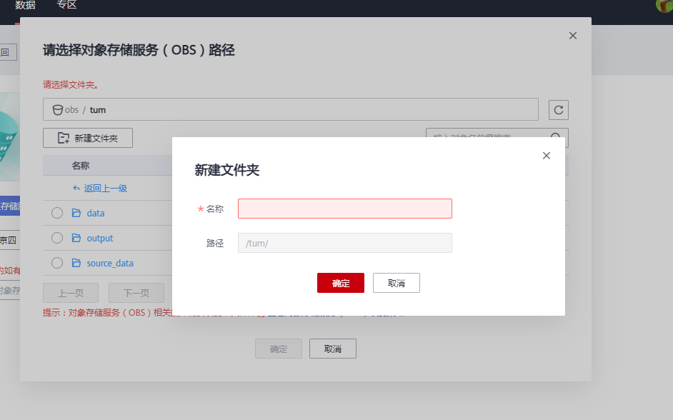 我们还需要指定一下训练文件保存的位置,在【模型输出】选择我们一开始创建的OBS桶,然后一样新建一个文件夹,将我们训练产生的文件存储到该文件夹中以备后面创建模型的时候使用。