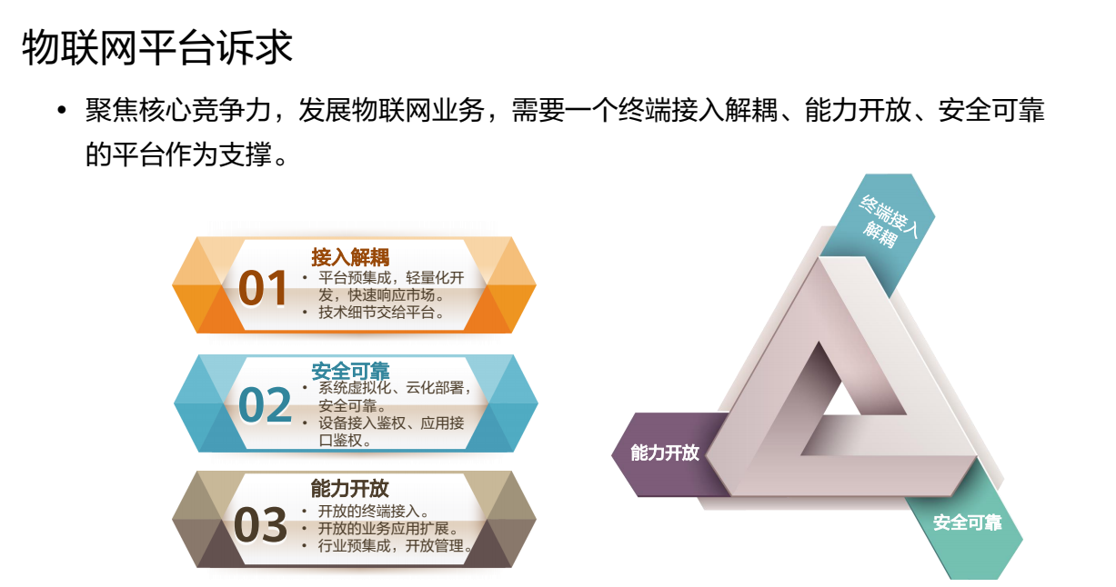 17.聚焦核心竞争力,发展物联网业务,需要一个终端接入解耦、能力开放、安全可靠的平台作为支撑。(True)