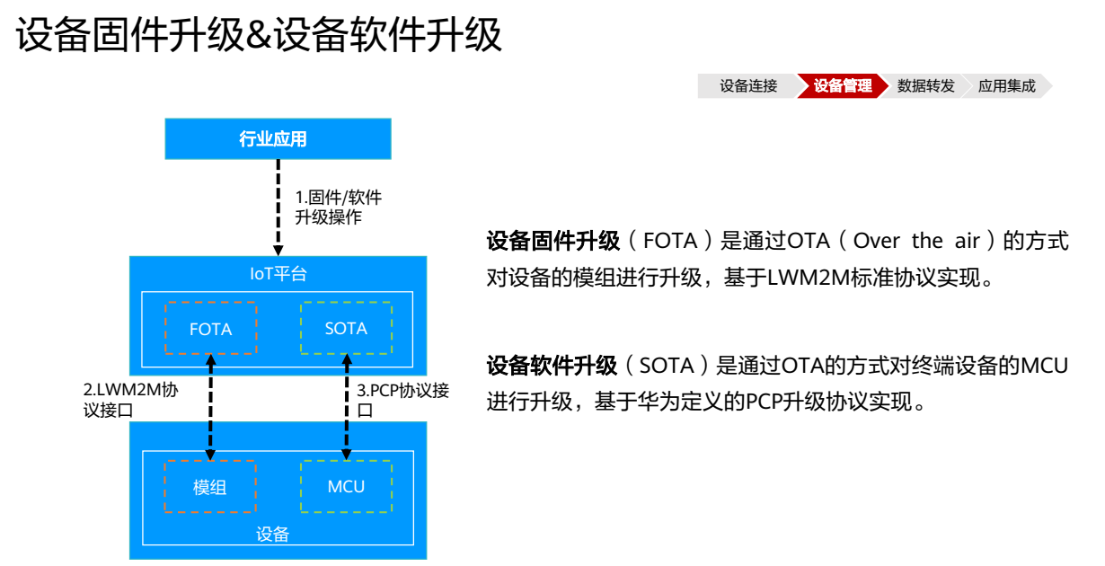 18.华为云物联网平台中,设备固件升级(SOTA)是通过OTA的方式对终端设备的MCU进行升级,基于华为定义的PCP升级协议实现。(False)