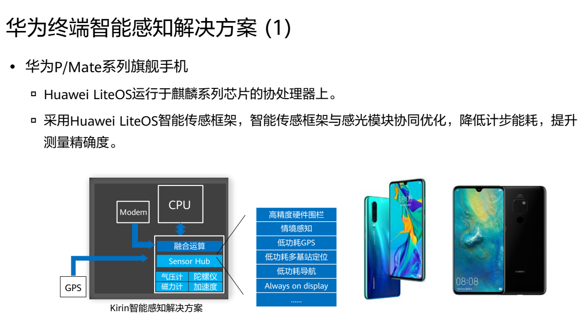 22.华为P/Mate系列旗舰手机,采用Huawei LiteOS智能传感框架,智能传感框架与感光模块协同优化,降低计步能耗,提升测量精确度。(True)