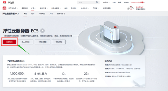 3.进入到弹性云服务器ECS界面,点击“立即购买”
