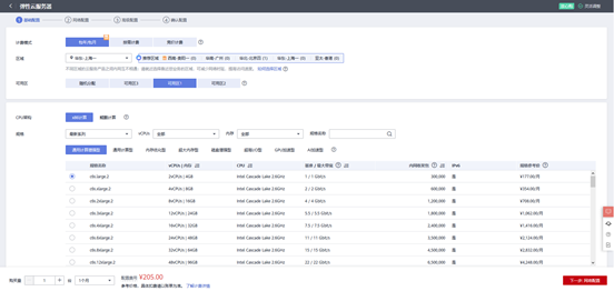 1)进入购买云服务器界面后,可以根据需求选择合适的配置