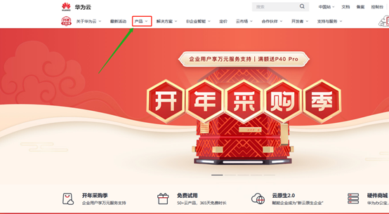 1.进入华为云官网,上方找到“产品”