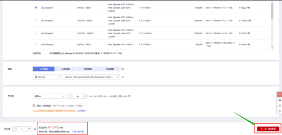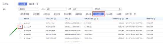 3)有需要用到GPU的伙伴可以选择“GPU加速型”,并从下方选择合适的规格