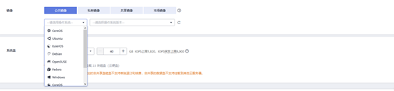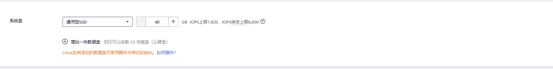 5)选择所需大小的系统盘,可选范围40-1024GB